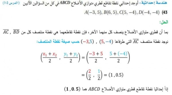 احداثيات نقطة تقاطع قطري متوازي الاضلاع