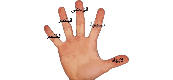 تحمل اليد خمسة أصابع هي الخنصر والبنصر والوسطى والسبابة والإبهام، ولكل إصبع منها مهمات مختلفة في حركة اليد. يمكن التعرف على نوع الشخصية من خلال شكل الأصابع، حيث يتم التعرف على معنى كل إصبع. وحسب اللغة الإنجليزية، يطلق اسم Pinky على الخنصر، واسم Ring على البنصر. كما أنها تتباين في اللغات الأخرى، حيث يُطلق اسم Les doigts في اللغة الفرنسية، ويُقصد منها أصابع اليد. ومن خلال الأسماء المُذكورة، يمكن ترتيب الأصابع في اليد حيث يبدأ من الخنصر إلى الإبهام.