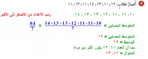 المتوسط الحسابي للبيانات ١٢ ١٠ ٩ ١٧