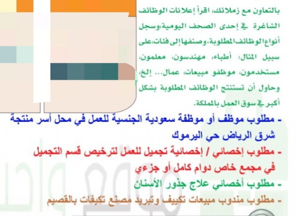 بالتعاون مع زملائك اقرا اعلانات الوظائف الشاغرة في احدى الصحف اليومية وسجل انواع الوظائف المطلوبة وصنفها الى فئات على سبيل المثال اطباء مهندسون معلمون،