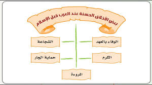 بينما يُعتبر العرب قبل الإسلام شدادًا وجهّزهًا في الحروب، فإنهم ميزوا أنفسهم بأخلاق جليلة وفي غاية الصدق والإخلاص. كانت لديهم قيمٌ وأخلاقٌ تنمو عن الإنسانية والشرف، كالكرم وإكرام الضيف، والشجاعة والفروسية، والمروءة، وحماية الجار وإنقاذ المستغيث، والوفاء بالعهد. وكانوا يلتزموا بتحية الغريب، حتى لو كان يقطع البلاد، ويُعطونه الإقامة، الطعام والشراب، دون أن يطلبوا منه شيئًا. بالنسبة للحرب، إذا طال العدو وجده سالمًا يُرده، ويُحترم الأسرى حتى لو أصبحت حريتهم جاهلية. هذه الأخلاق الحسنة كانت من صفات العرب قبل الإسلام، وتدعونا إلى تطبيقها في حياتنا اليومية.