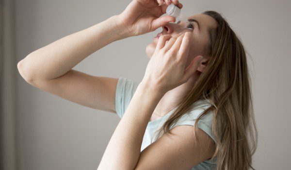 من الضروري إغلاق العيون بإحكام أو النظر إلى الأسفل لمنع القطرة من الدخول في العين مباشرة.