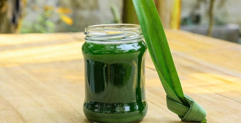 ضع هذه الأوراق المقطعة في وعاء وأضف إليها كوبًا من ماء الكادي. اترك الخليط على النار حتى يبدأ بالغليان وتلاحظ تغير لون الماء إلى الأخضر.
