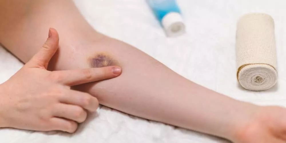 أيضًا، قد تلاحظ ظهور بقع حمراء غير مرتفعة على الجلد، تتركز غالبًا حول مناطق الساقين والقدمين، وقد تبرز هذه البقع بأشكال تشبه الكتل. إضافة إلى ذلك، قد تتكون على الجلد بقع أو كدمات تبدو كما لو كانت ناتجة عن ضربة قوية، تميل هذه الكدمات إلى اللون الأزرق أو الأرجواني ومع مرور الوقت قد تتحول إلى الأصفر أو الأخضر.