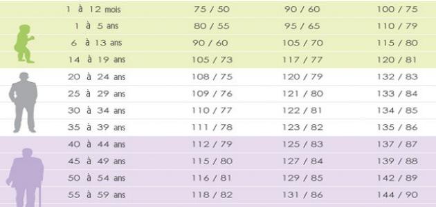– ومن سن 51 إلى 55 سنة، يرتفع الضغط إلى 125/80.