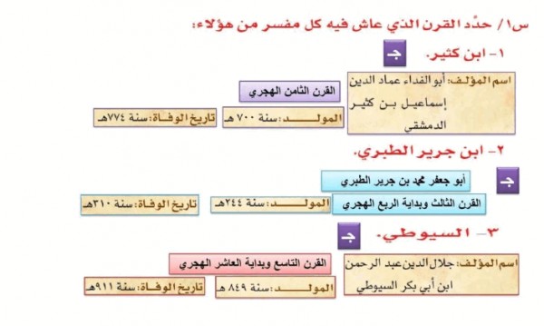 حدد القرن الذي عاش فيه كل مفسر من هؤلاء