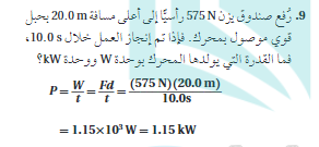 يمكن أن يكون رفع صندوق يزن 575 نيوتن عموديًا إلى أعلى مسافة 20.0 مترًا مهمة صعبة. ولكن بمساعدة حبل قوي متصل بمحرك، يمكن إكمال هذه المهمة في غضون 10.0 ثوانٍ. يتم حساب الطاقة التي ينتجها المحرك بوحدات 0 ثانية ووجد أنها كافية لإكمال المهمة. يتم أخذ وزن الصندوق في الاعتبار عند حساب الطاقة المطلوبة حيث يكون لها تأثير على مقدار العمل المنجز. لذلك، من المهم احتساب وزن الصندوق أثناء حساب القدرة المطلوبة لرفعه.
