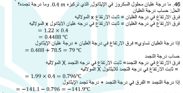 ما درجة غليان محلول السكروز في الايثانول؟