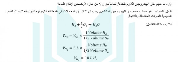 حجم الهيدروجين اللازم للتفاعل مع 5 لترات من غاز الأكسجين لإنتاج الماء يعتبر معلوماً وهو يساوي 10 لترات. في حين يتفاعل الغازين، فإن المعاملات الكيميائية تحدد المقدار المطلوب لتحقيق تلك المفردات الكيميائية بشكل كامل. بذلك يمكن للأشخاص الذين يعملون في المجال الكيميائي تحديد الأحجام المطلوبة للمواد المختلفة لجعل التفاعل يتكامل بالشكل الأمثل. لذا، عند الدراسة والتحضير للعمل الكيميائي، يجب مراعاة المعلومات المسبقة المتعلقة بالمفردات الكيميائية ومقدار تفاعل الغازات المطلوب للحصول على النتائج الدقيقة.