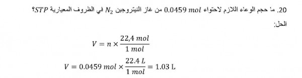 ما حجم وعاء اللازم لاحتواء 0.0459 من غاز النيتروجين؟