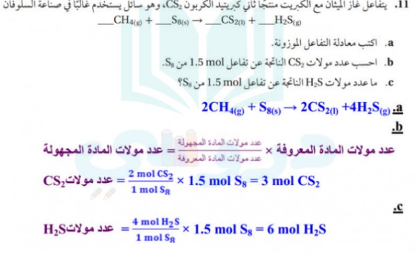 يتفاعل غاز الميثان مع الكبريت منتجاً ثاني كبريتيد الكربون